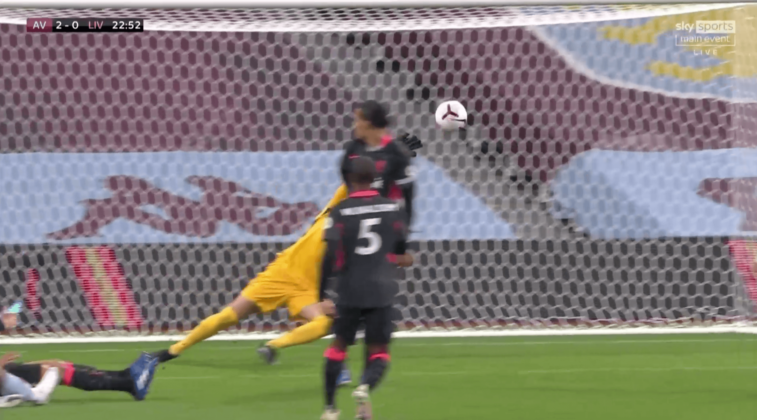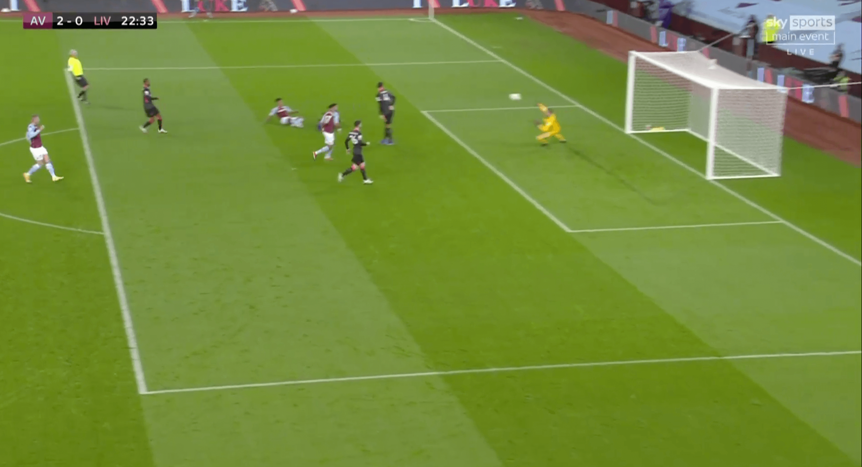 We’re entering into Gary Neville analysing Simon Mignolet territory, but the stance and the positioning of a goalkeeper are so important. In the still below, taken just prior to Watkins scoring his second, you can clearly see Adrian’s shape. His feet are planted.Â