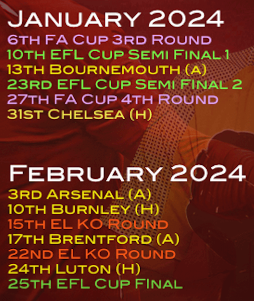 - League Cup semi-final 2nd leg (January 22nd/23rd)