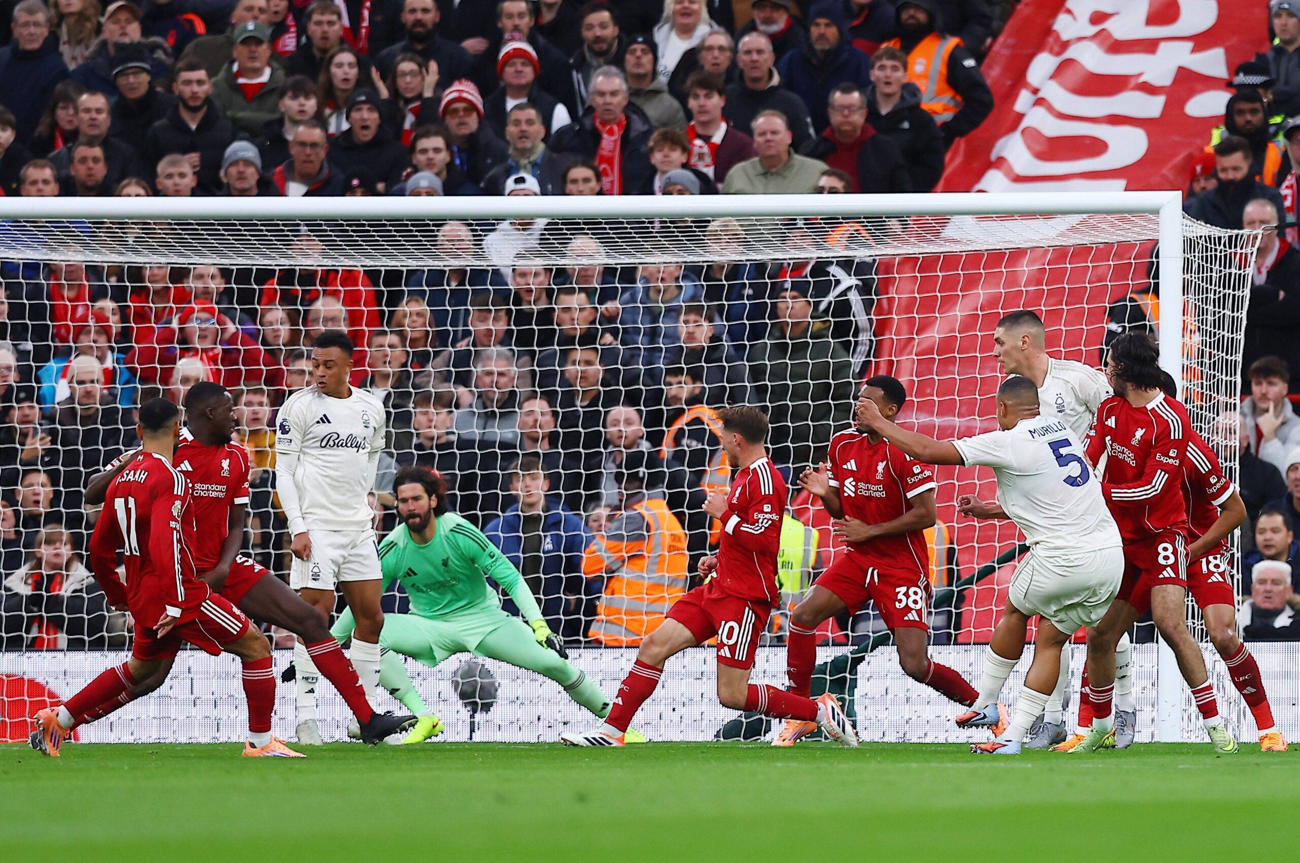 Murillo of Nottingham Forest scores the opening goal Liverpool v Nottingham Forest, Premier League, Football, Anfield, Liverpool, UK – 22 Nov 2025Liverpool Anfield United Kingdom EDITORIAL USE ONLY No use with unauthorised audio, video, data, fixture lists, club/league logos or live services. Online in-match use limited to 120 images, no video emulation. No use in betting, games or single club/league/player publications. PUBLICATIONxINxGERxSUIxAUTxHUNxGRExMLTxCYPxROUxBULxUAExKSAxCHNxDENxINDxITAxPORxESPxSWExTURxMEXxCOLxVENxPERxECUxBRAxARGxCHIxURUxPARxPANxONLY Copyright: xMattxWest/Shutterstockx 15860648v