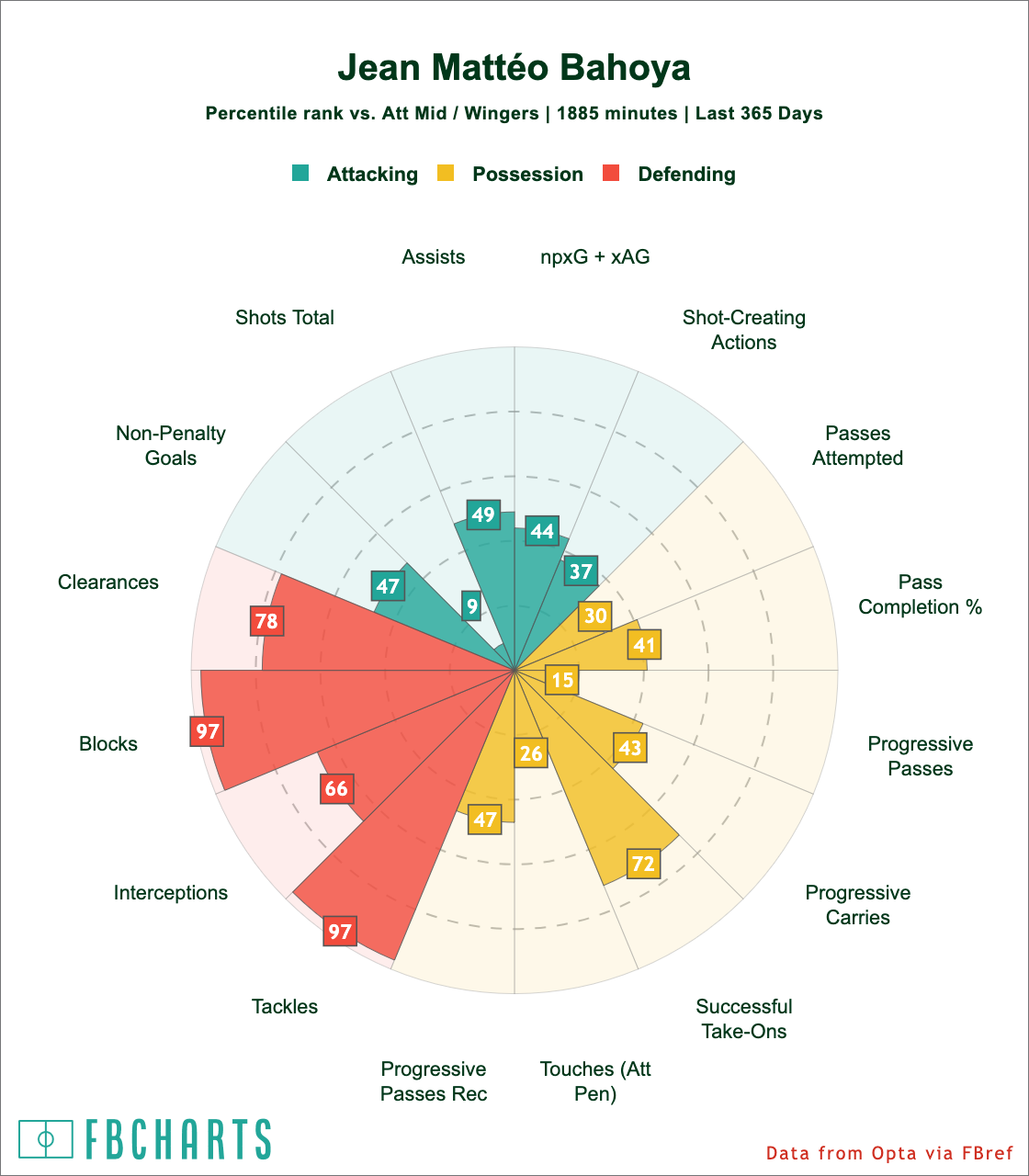 Liverpool’s data-led approach places weight on per-minute impact, and Bahoya’s underlying numbers compare favourably with more established wide players across Europe’s top leagues.