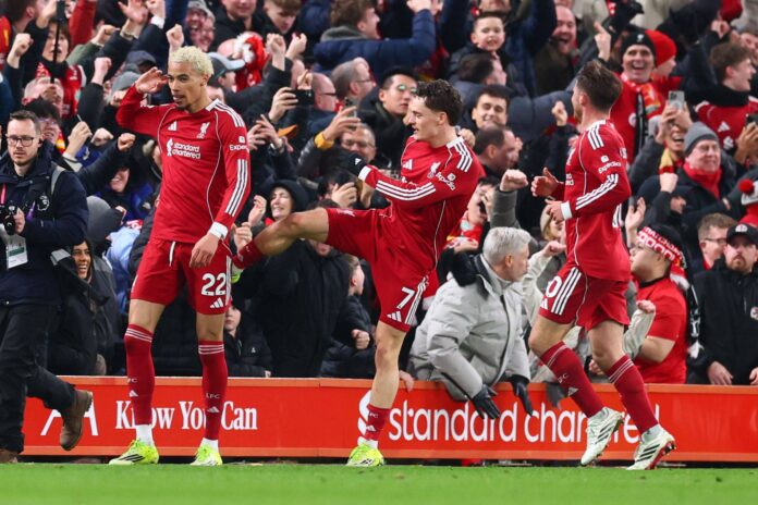 What followed, however, was a response rooted in physical authority. Ibrahima Konaté immediately imposed himself, stepping into duels and dominating aerially. Ryan Gravenberch and Dominik Szoboszlai drove the ball forward with intent, refusing to let the game settle into chaos.